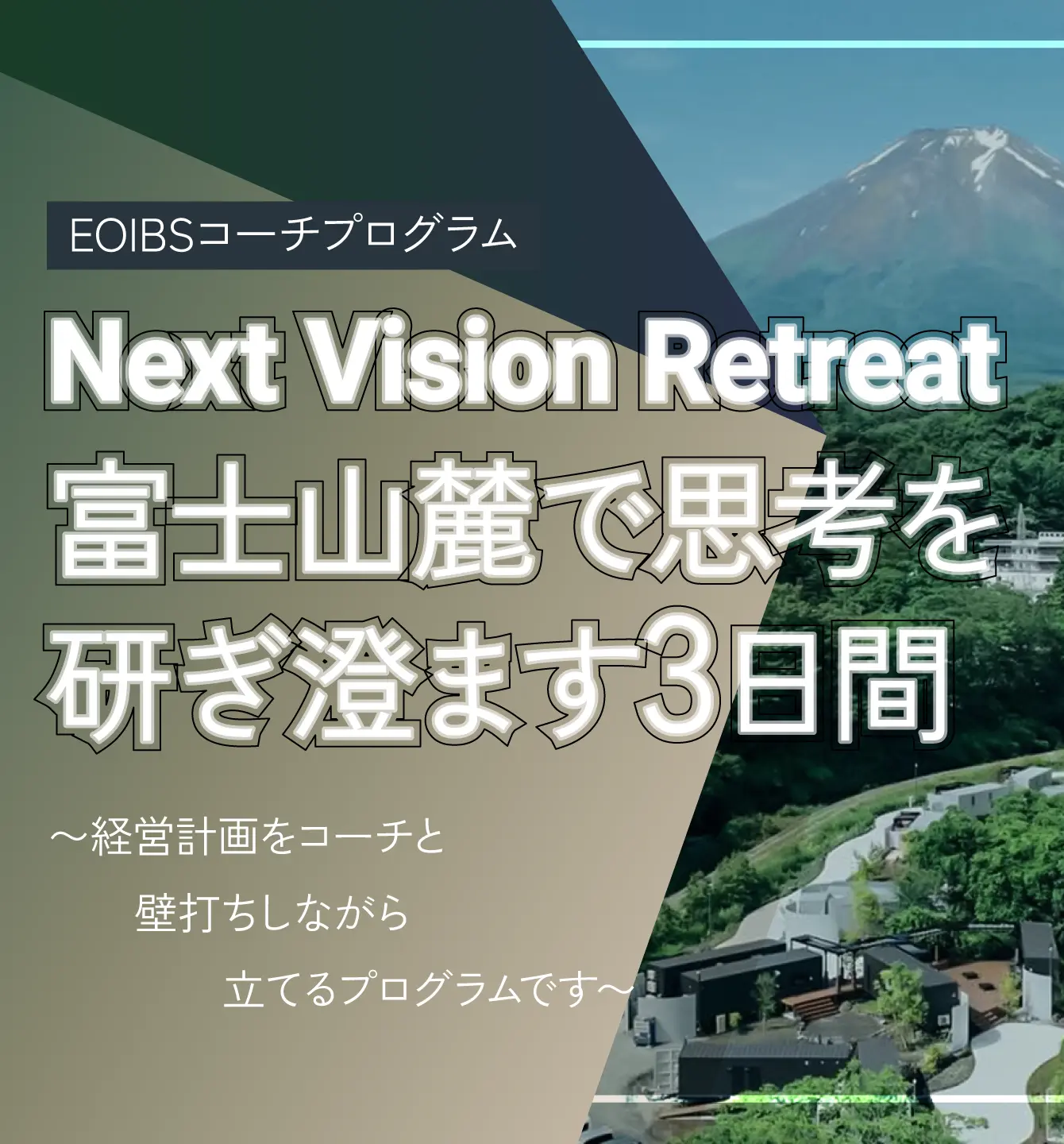 富士の自然とサウナに身を置き、フレームワークと対話を通じて、来期以降の爆発的な成長への足場を固めます。