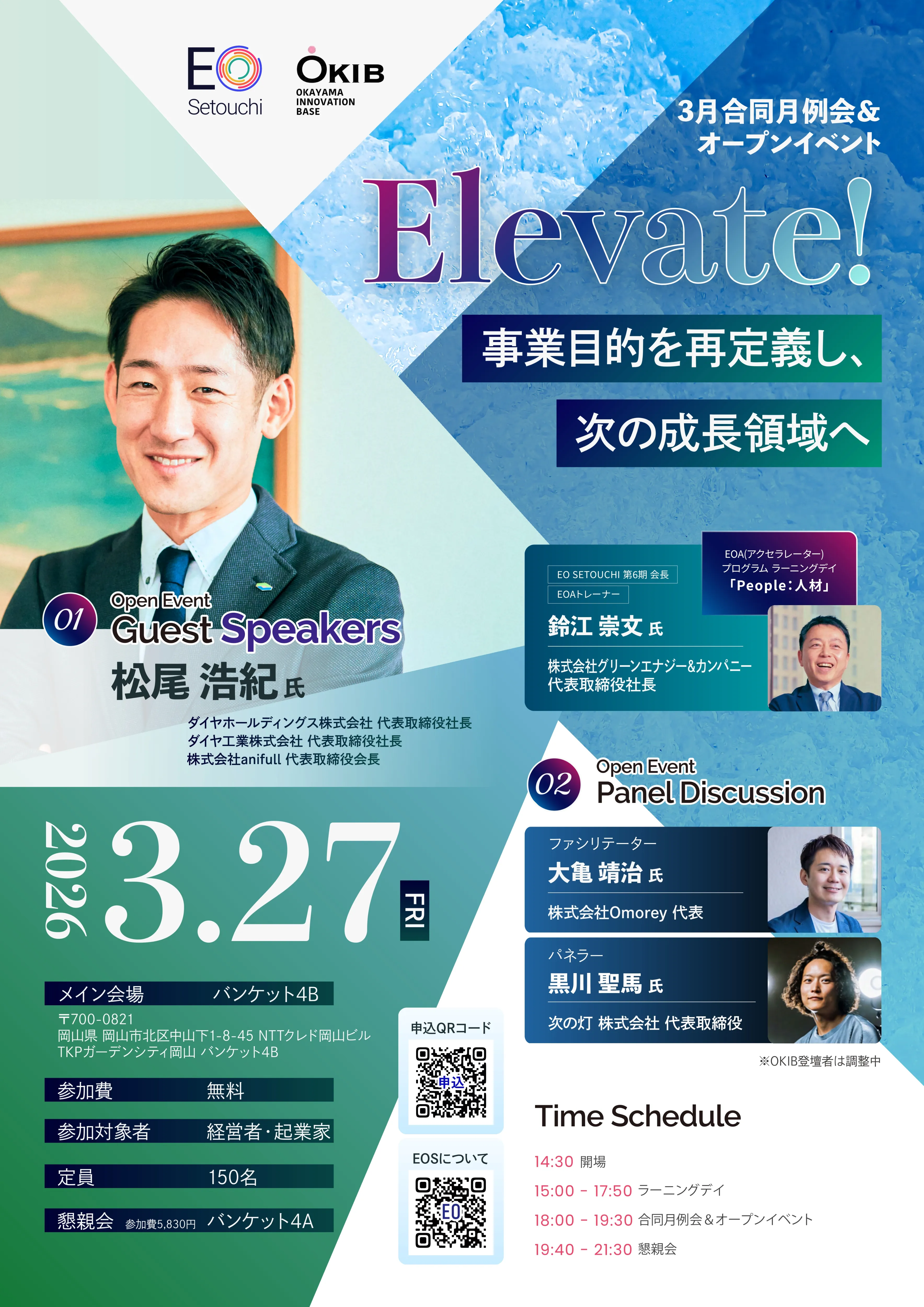 - 2026年3月27日(金)15:00~21:30 ※開場:14:30